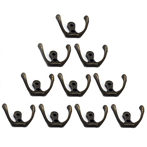 Richohome Retro Double Prong Robe Hook,Hat and Jewelry Hook- Pack of 10