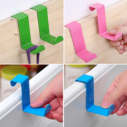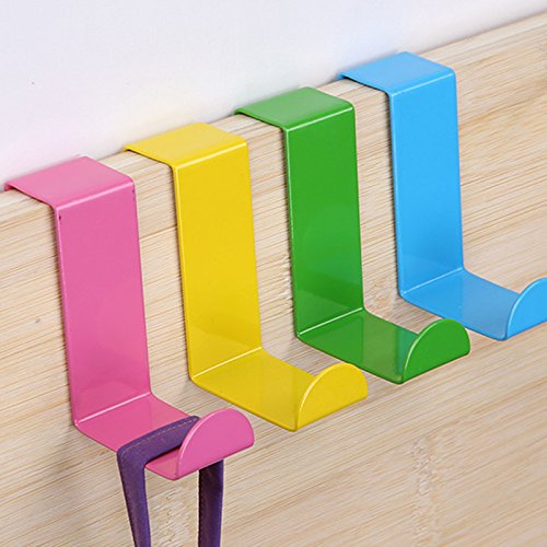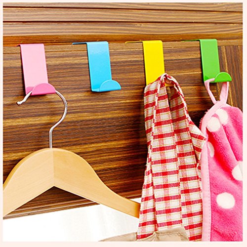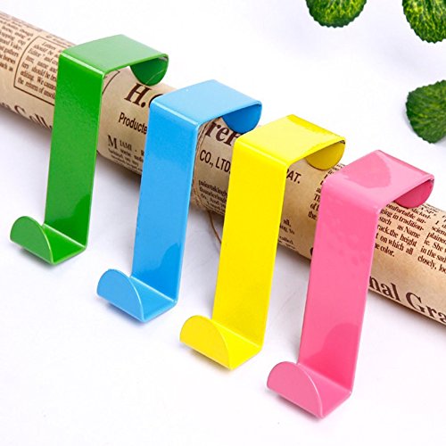 Mziart 4pcs Colorful Over Door Hooks Holder Stainless Steel Bathroom Kitchen Cabinet Reversible Coat Hooks Rack