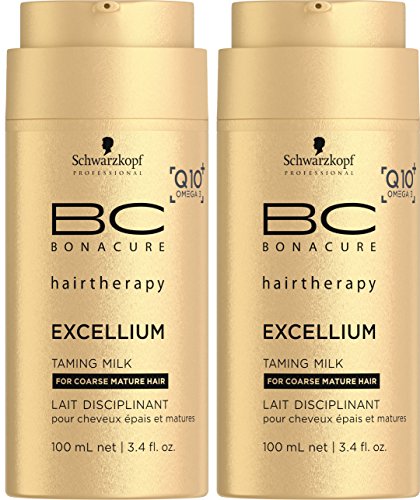 BC EXCELLIUM TAMING Milk with Q10+ Omega-3 restores the youthfulness of coarse mature hair while preserving hair color. It tames frizz and protects from blow-dryer heat. for smooth hair full of vitality. A substance detectable in every human cell and indispensable for the energy production in the respiratory chain, powerful co-enzyme Q10+ stimulates the hair root to reactivate keratin production. Omega-3 is known in the food and cosmetic industries for providing the essential lipid nutrients needed to maintain hair and skin in optimum condition, as well as preventing signs of aging. It helps to tame wiry, coarse, unruly hair while it smoothes the hair surface.Feature