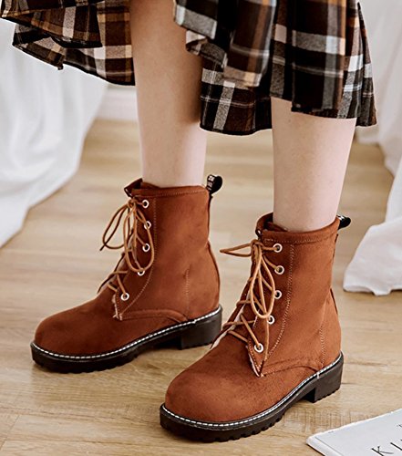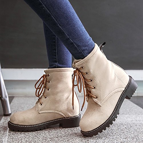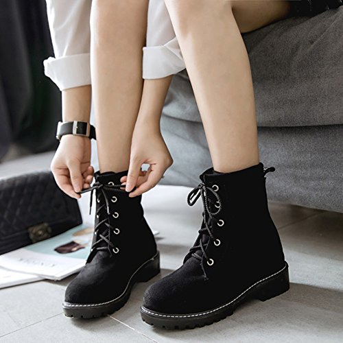 Binding : Apparel Product Description This pair of shoes is for women, girls, young ladies and office workers. You will look elegant and sexy when wearing them. The heels measure 1.4 inches. You will feel comfort in their low heels. So you will not feel too tired when walking with them. This pair of shoes features lace up closure and ankle high. You will look sweet in their round toe. The sole is made of good rubber. You will feel comfortable in their soft bottom. They are of high quality and durable. Come on and take them away! 0