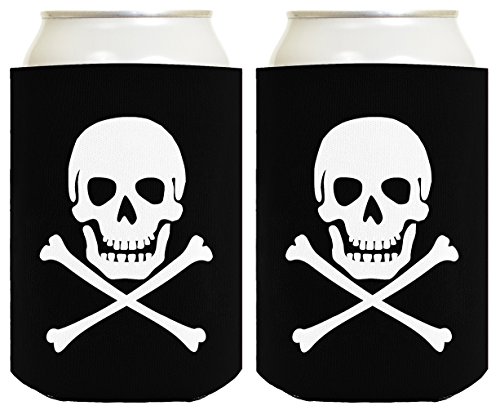 Funny Beer Coolie Skull Crossbones Pirate Jolly Roger 2 Pack Can Coolie Drink Coolers Coolies Black
