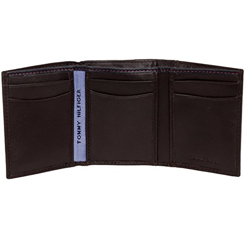 Let your cash ride around in comfort in this Oxford Slim Passcase Wallet from Tommy Hilfiger. Crafted from genuine leather, this wallet features a soft outer that's adorned with the iconic Tommy Hilfiger logo. Opening up your wallet reveals a blue lined interior with 6 card slots, 3 slip pockets, an ID window, and bill pocket. The slim design measures only 0.75 inches thick. Each wallet comes packaged in a Tommy Hilfiger gift box. Measures 3.75" x 3" x 0.75" (closed).Feature