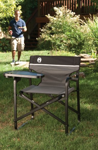 ReleaseDate : 2011-01-01 Studio : Coleman Powermate Publisher : Coleman Powermate Format : CD-ROM Binding : Sports Product Description The Coleman Deck Chair with Swivel Table is made for comfort and convenience. It features a built-in table for your drink, reading material, or other necessities, there when you need it; the table swivels 180° side-to-side, and folds down for transport and storage. The universal drink holder fits bottles, wine glasses, cups and cans. The chair is built to be a comfortable seat, supporting up to 250 pounds on a strong yet lightweight aluminum frame. 0