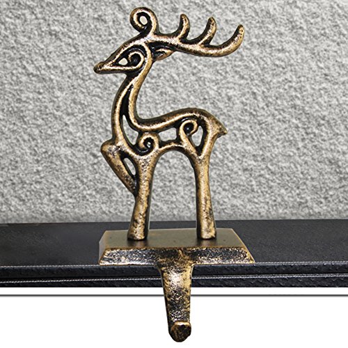 Fannybuy Christmas Stocking Holder Hangers Metal for Fireplace Mantle Free Standing Christmas Decorations Indoors Deer Snowman Sata Snowflake Xmas Decorations (deer)