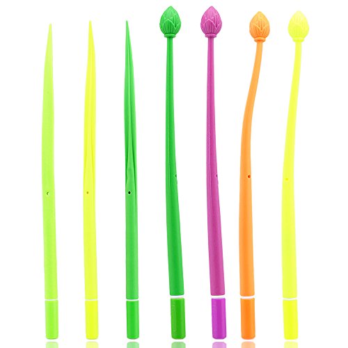- Feature : Have Fun rollerball Pens! / Randomly multiple color shipped. / 0.38mm Black Ink / Package includes: 16pcs grass blade leaf pens + 4pcs Lotus pens + 1pcs green or ocean blue silicone bracelet / Note: The bracelet's colors of gifts will be random shipments