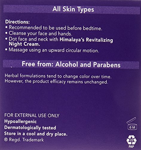 Himalaya Revitalizing Night Cream Restores and Rejuvenates, Alcohol-Free, 1.69 Ounce