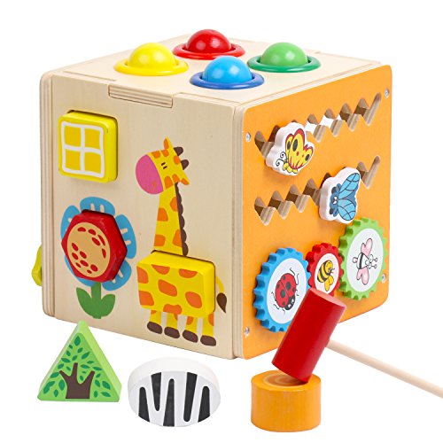 -. Feature : Multifunctional Activity Cube: Toddlers can play shape sorter,maze, take a race,beat the ball via the hammer with friends or parents on our activity cube / Pass CPSC Certification: Helps toddlers develop color and shape recognition skills; For ages above 3 years old kid; Adopt Non-toxic finishes and child safe materials / Play&Learn : Develop kid's cognitive ability, cultivate kid's eye and hand coordination ability, train kid fingers muscle flexibility / Best Gift for Kids: Best choice as kids' Christmas/ birthday gift. It is also a good parent-child game toy / Our Guarantee-Any dissatisfaction will get a full refund or replacement and friendly customer service