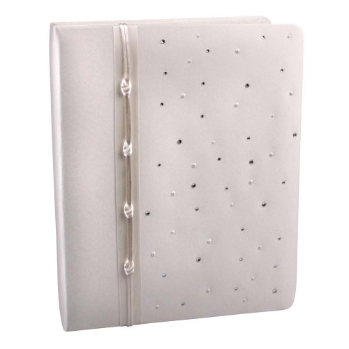 - Ivory peau de soie satin adorned with pearls and Swarovski crystals cover this 9-3/4-inch by 11-1/2-inch 3-ring binder