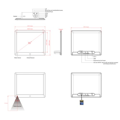 -. Binding : Electronics -. Brand : NIX -. EAN : 5060156640722 -. Feature : Photo & 720p HD Video Playback: Mix photos (JPEG) and video (MPEG-4) in the same Slideshow. / 1024x768 High Resolution IPS (4:3) LED Backlit Display / Hu-Motion Sensor: Turns the frame on when you enter the room and off when you leave the room! / 8GB Thumb Portable Drive Memory Included, frame accepts USB & SD/SDHC Card. Comes with an intuitive remote control. / Clock/Calendar Function, Stereo Speakers , Full One Year Warranty -. IsAutographed : 0 -. IsMemorabilia : 0 -. Label : NIX -. LegalDisclaimer : OPEN BOX. GREAT CONDITION. -. Manufacturer : NIX -. Model : X10G -. MPN : X10G -. PackageQuantity : 1 -. PartNumber : X10G -. ProductGroup : Photography -. ProductTypeName : CAMERA_OTHER_ACCESSORIES -. Publisher : NIX -. Size : 10 inch -. Studio : NIX -. Title : NIX Advance - 10 inch Digital Photo & HD Video (720p) Frame with Motion Sensor & 8GB USB Memory - X10G (Dual Voltage)