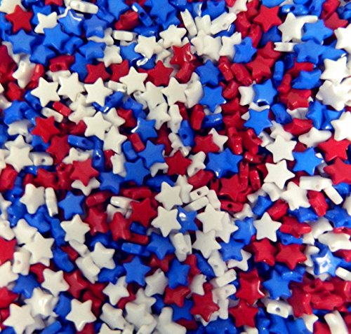 Rockin Beads 1000 Mixed Acrylic Star Spacer Beads 9mm Round Red White Blue