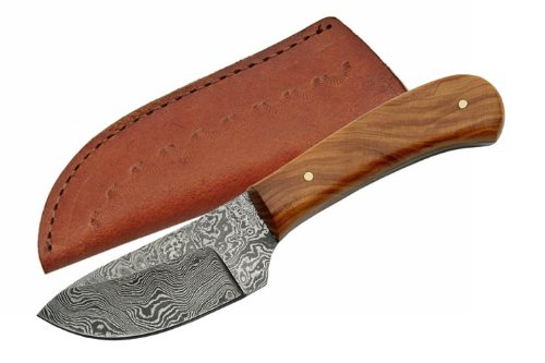 SZCO SUPPLIES DM-1080OW DAMASCUS SKINNING KNIFE WITH OLIVE WOOD HANDLE