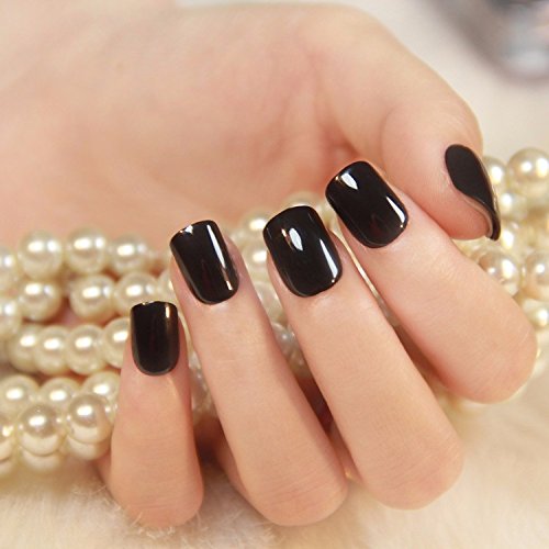 24 Pcs 12 Sizes Solid Color Pre-glue Fake Nails Short Press on Style Black Full Cover Oval Nail Art Tips for Finger … (Black)