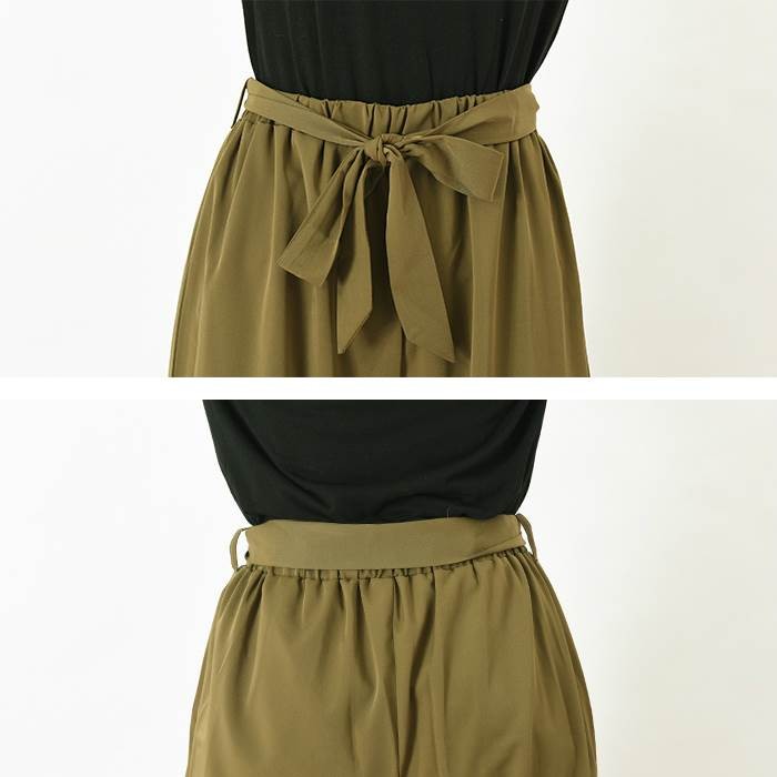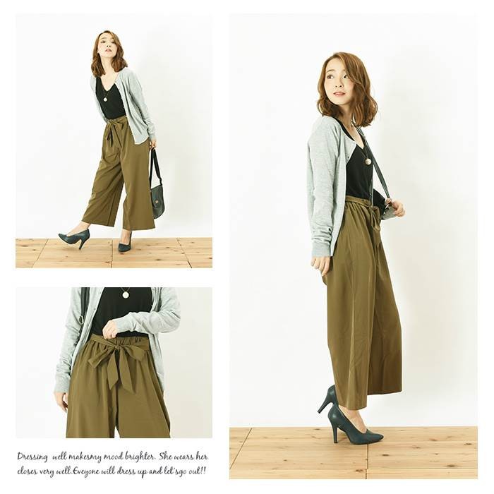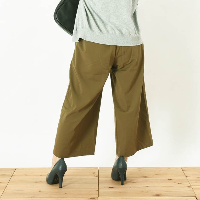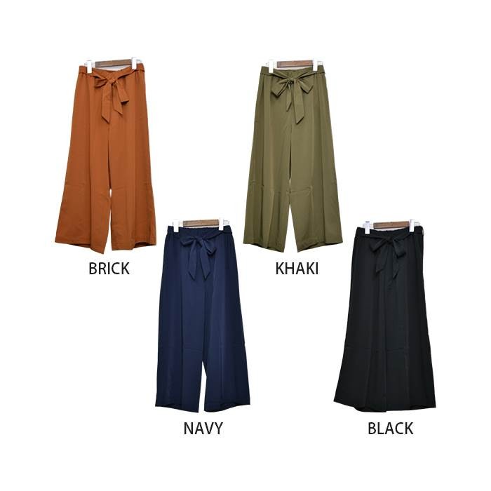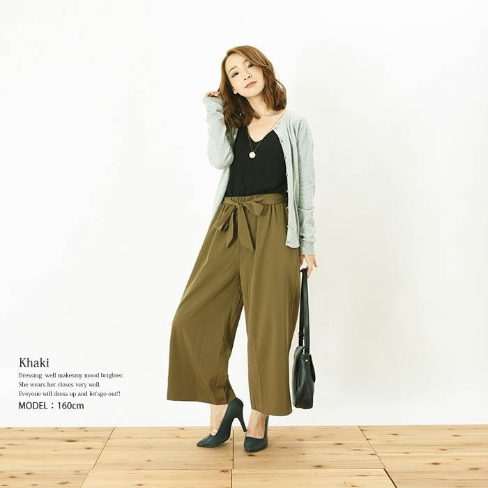 ●商品の特徴・サラッと落ち感があり、しっかりとした透けない生地感のツイル素材のガウチョパンツです。・こなれ感たっぷりでスタイリッシュな印象になり、幅広いコーディネートに着回しできるのでワードローブにお使いいただけます。・無地でシンプルなので、スッキリとした雰囲気がありオールシーズンお使いいただけます。・ウエスト部分には、取り外し可能な共生地のリボン付きです。●サイズ展開 【M】 着丈85cm ウエスト64~70cm 【L】 着丈86cm ウエスト69~77cm●カラー展開 キャメル カーキ ネイビー ブラック ※画像をご参照下さい。●商品詳細 【素材】:ポリエステル95% ポリウレタン5% 【厚み】:普通 【裏地】:なし 【シルエット】:ゆったり 【伸縮性】:ややあり 【付属品】:なし (コーディネート使用の衣類、アクセサリー等は付属しません)20代 30代 40代 50代 人気 レディースファッション 大きいサイズ