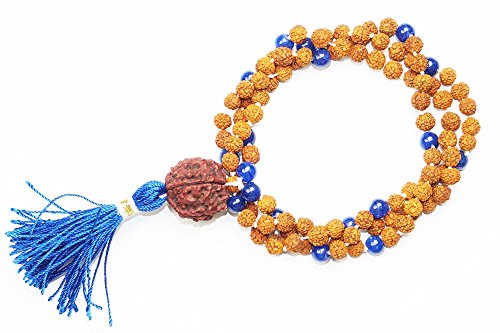 - Feature : This is a hand knotted buddhist blue lapiz mala necklace. / Lapis Lazuli is a powerful crystal for activating the higher mind and enhancing intellectual ability. It stimulates the desire for knowledge, truth and understanding, and aids the process of learning. It is excellent for enhancing memory. / Rudraksha Beads for Healing and keep your body strong to fight against negative Energy / Approximate Length: 13.5".. / 90 Rudraksha Beads and 18 Stones