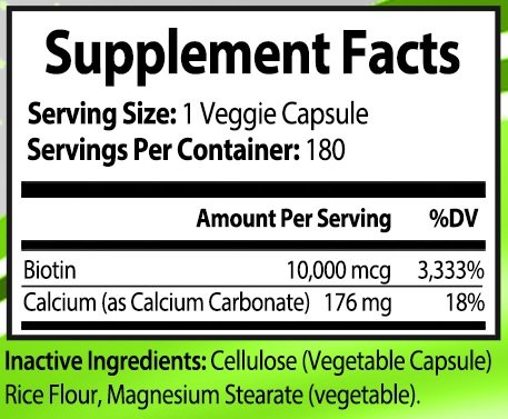 Can promote STRONG HEALTHY HAIR,SKIN, & NAILS - A deficit in Biotin can result in weak nails and hair, which is why it is beneficial to give your body the Biotin it needs to grow strong and healthy nails and hair. Also includes 176mg of Calcium for more support