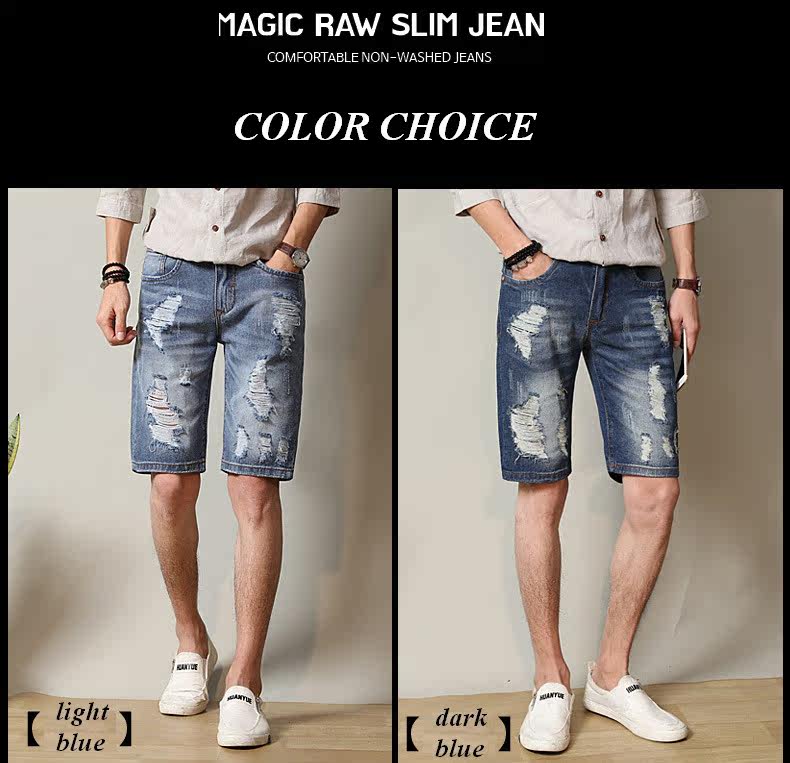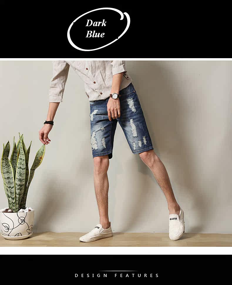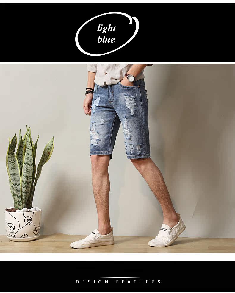 Material:Denim Pattern: short jeans pants Craftsmanship: 3Dcutting out Features:breathable,fashion holes,special washing color Cloththickness: Medium Occasion: outdooractivities,casual package: 1X shortpants Available Color:light blue,dark blue Size:28-38 (pleasecheck details data in size chart.)