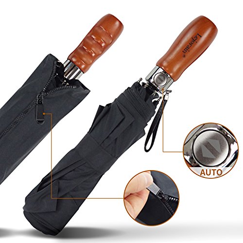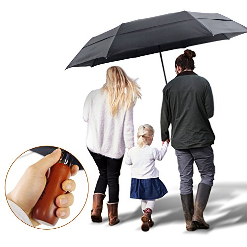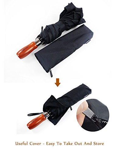 5. Ergonomic Wood Handle: Luxury handmade real wood handle with finger-notches for this auto umbrella makes it comfortable to hold.