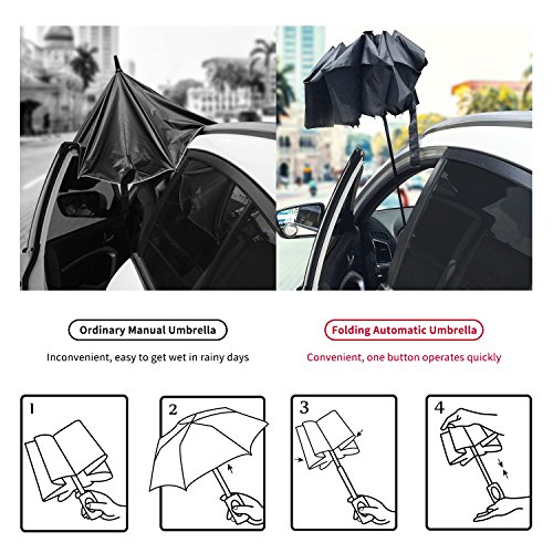 1. Fast Auto Open and Close: You won't look like a wet dog when you get out of your car into the rain, especially when your hands are full. You will be able to open our auto umbrella QUICKLY.