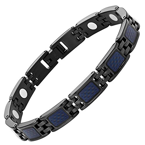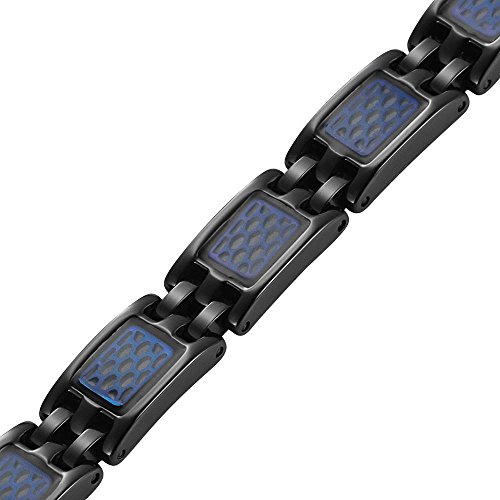-. Binding : Jewelry -. Brand : Willis Judd -. Department : womens -. Feature : Features a unique style from a blend of black titanium and a blue honeycomb effect / Free link removal tool - allows you to adjust the size in the comfort of your home / Extra strong high powered magnets (3000 gauss) / Hand crafted from super strong, yet super light weight pure titanium / Free premium Willis Judd gift box included -. Label : Willis Judd -. Manufacturer : Willis Judd -. Model : TB0206 -. MPN : TB0206 -. PartNumber : TB0206 -. ProductGroup : Jewelry -. ProductTypeName : FASHIONNECKLACEBRACELETANKLET -. Publisher : Willis Judd -. Studio : Willis Judd -. Title : Willis Judd Black Titanium Magnetic Bracelet with Honeycomb Adjustable