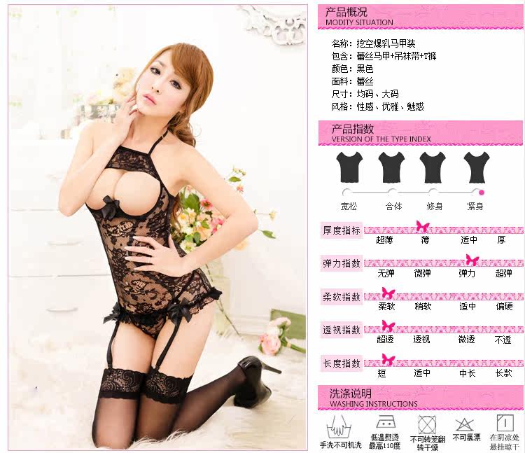 【性感透明情趣内衣女真人蕾丝大码钢托聚拢制服含t裤吊带丝袜诱惑】