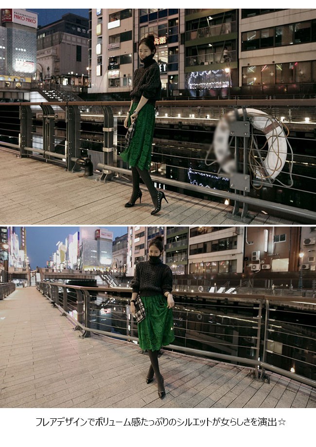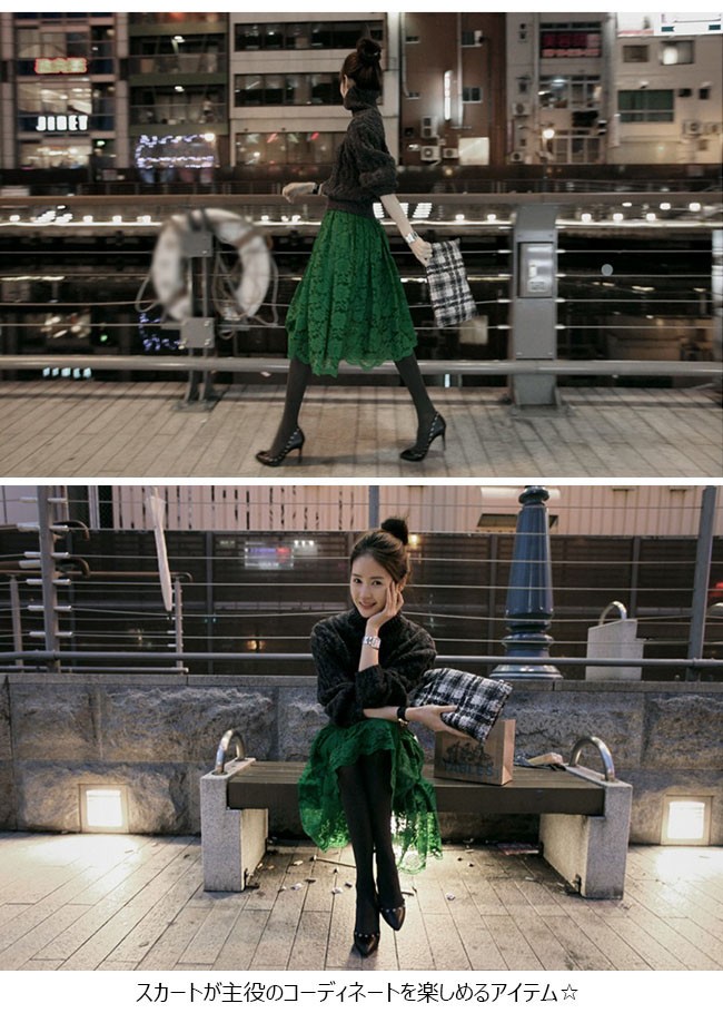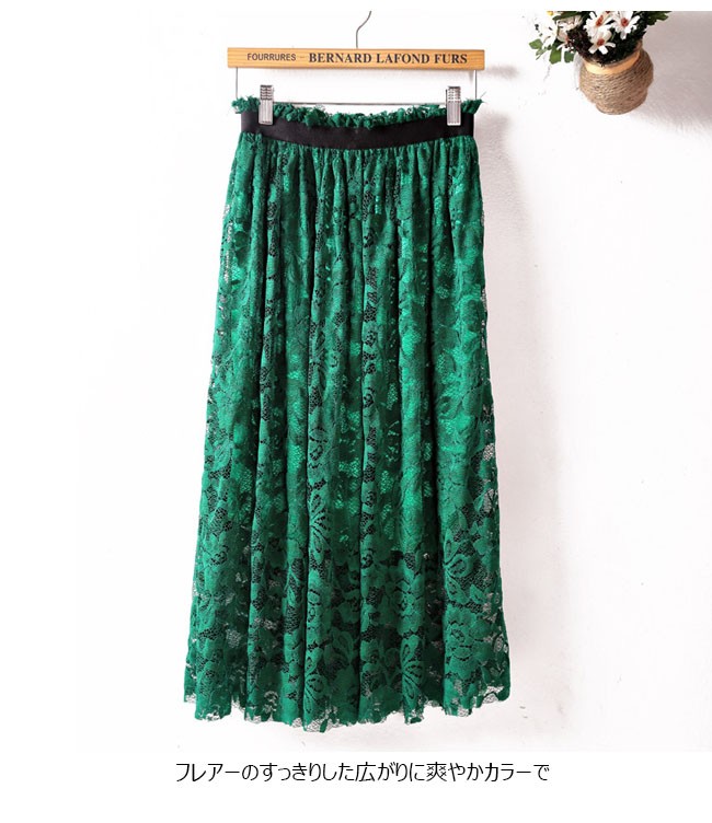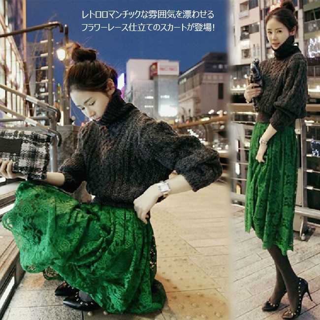 レトロロマンチックな雰囲気を漂わせるフラワーレース仕立てのスカートが新入荷♪| 商品名 | 総レーススカート フレアスカート 花柄レース 透け感 ウェストゴム レディース ロングスカート フレアスカート Aライン シンプル ボトムス 美脚 通勤 通学 ファッション 2017秋冬新作 |