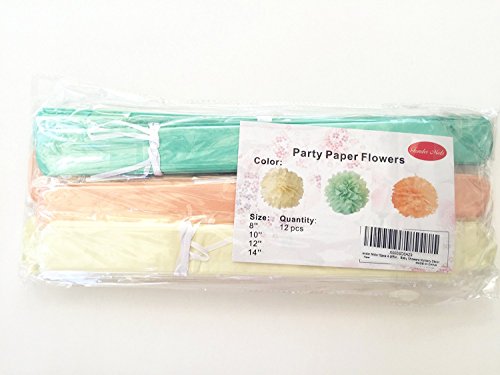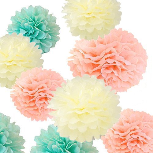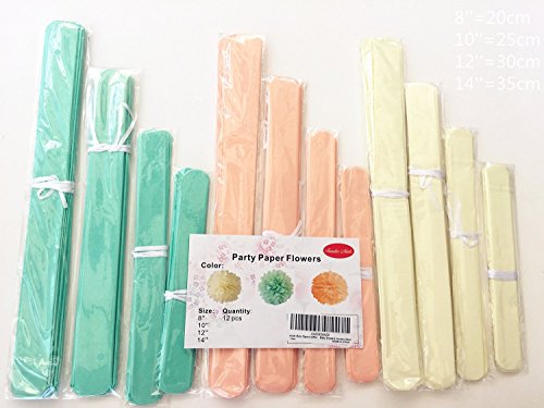 Fonder Mols 12pcs 4 different Sizes 8'' 10'' 12'' 14'' Ivory Peach Mint Party Tissue Pom Poms Flower Party Decorations for Weddings, Birthday, Bridal, Baby Showers Nursery Décor