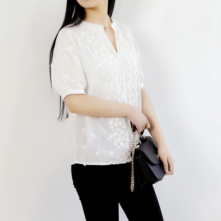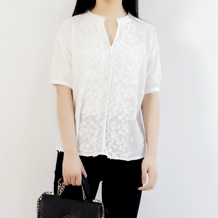シャツ レディース 半袖 白シャツ レディース 無地 フォーマル ブラウス カジュアル ゆったり 大きいサイズ トップス Vネック 刺繍柄 2018春夏秋新作 シャツ レディース 白シャツ 大きいサイズ 刺繍柄 トップス商品詳細素材:綿80%&その他袖丈:半袖ネック:Vネック季節:春夏秋カラー:ホワイトサイズ:フリーサイズ産地:中国サイズ参照表フリーサイズ着丈69~62cmバスト113cm裾周り110cm肩幅55cm袖周り41cm袖丈19cm袖口24cmご注意:個人採寸のため、1~3cmの誤差は正常範囲内となりますが、ご了承ください。シャツ レディース 半袖 白シャツ レディース 無地 フォーマル ブラウス カジュアル ゆったり 大きいサイズ トップス Vネック 刺繍柄 2018春夏秋新作 シャツ レディース 白シャツ 大きいサイズ 刺繍柄 トップス