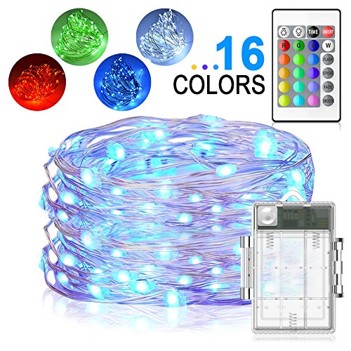 LED String Lights, Yoozon 16ft 50 LEDs Fairy Lights Battery Operated Waterproof 16 Colors Outdoor String Lights with Remote Control LED Lights for Bedroom, Corridor, Patio, Garden, Yard, Photo Frame