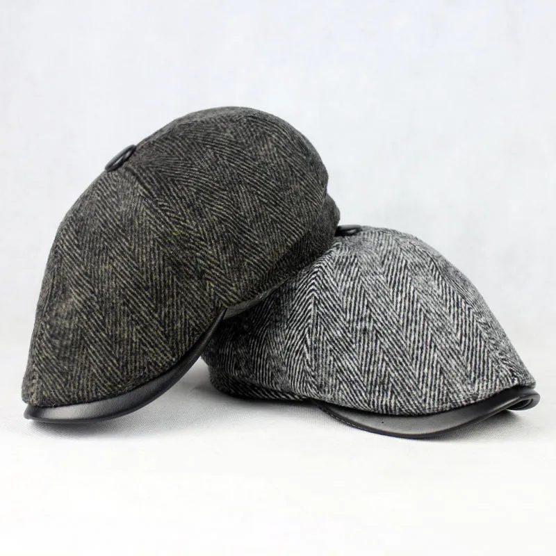 | [해외]2015 새로운 가죽 가장자리 패치 Gorras 플랫 캡 남성 겨울 모자 좋은 품질의 베레모 Boina 모자 2 모델 선택 |