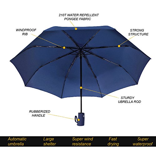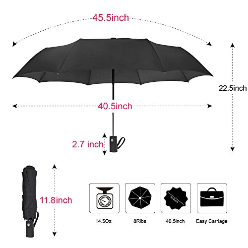 -. Brand : Hailix -. Department : unisex-adult (luggage only) -. Feature : PERFECT TO KEEP IN YOUR CAR-The folded length of this HAILIX umbrella is only 11.8 inches long making it perfect to keep in your car without damage and much easier to carry into stores and such when you are out. / ONE TOUCH AUTO OPEN CLOSE - Perfect for one handed operation. Simply open or close the umbrella with a press of a button within one second. / WINDPROOF AND WATERPROOF- Hailix 60 MPH windproof strong sturdy umbrella can protect you even if in a drenching downpour with a premium quality canopy which is made from pongee fabric that is highly water repellent and quick drying / HIGH QUALITY MATERIALS- The surface of this kind of umbrella is made of ultra-high density pongee fabric. The frames are a combination of electroplated steel shaft and premium resin-reinforced fiberglass ribs. / LIFETIME GUARANTEE - Every Hailix umbrella comes with a lifetime replacement guarantee against defects in our premium materials and quality workmanship.If the umbrella has any problems after a month, a year or even many years, we will refund in full or replace it. -. ProductGroup : Apparel -. ProductTypeName : LUGGAGE -. Size : L -. Title : Windproof Folding Umbrella -Auto Open Close for One Handed Operation - Compact Travel Umbrellas