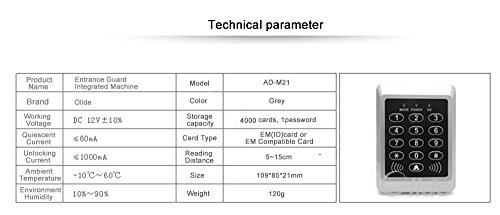 -. Title : Single Door Entrance Guard RFID Card Reader DC12V Access Keypad Integrated Machine