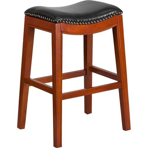 -. Title : Parkside 30 In. High Backless Light Cherry Wood Barstool with Black Leather Seat