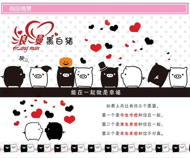 墙面装饰墙贴纸贴画情侣黑白猪可爱客厅卧室路灯爱情
