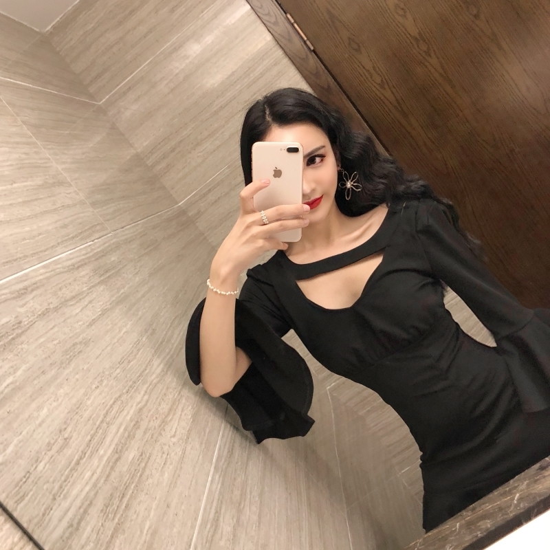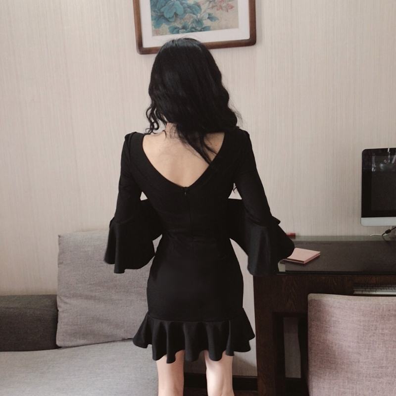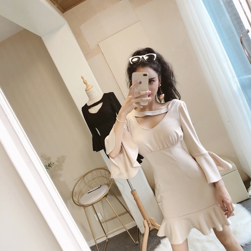 肩のフリルがカワイイ、シンプルなボディコンミニドレス!