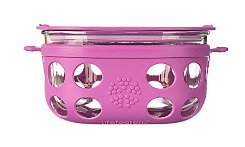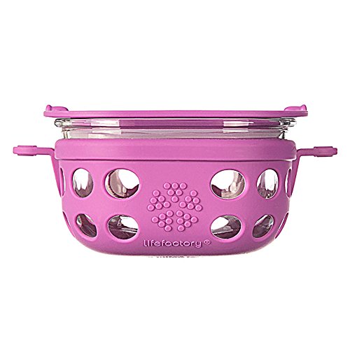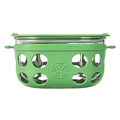 Add a dash of design to your lunchbox, cabinets, and fridge with Lifefactory’s mobile food storage collection. Delivering functional utility matched with delightful vibrancy, the Lifefactory 4-cup (950 ml) glass storage container is perfect for storing food at home as well as for carrying larger lunches, salads, or snacks on the go. Built for mobility, this innovative food container is durable enough to travel to the park for a picnic making it a great alternative to plastic. The silicone sleeve features a button closure that secures the container to the lid. Offered in a range of colors with 1, 2, and 4 cup capacities, Lifefactory mobile food storage containers can be mixed and matched and the bright colors make it easy to identify foods in crowded refrigerators and cabinets. Constructed of tempered glass with a heat-safe silicone sleeve, the containers are oven, microwave, freezer, and dishwasher safe. For easy care, the containers can be placed in the dishwasher with the silicone sleeve on. The polypropylene lid is dishwasher and freezer safe, but shouldn’t be used in the oven or in microwaves. Reusable Lifefactory mobile storage containers offer a non-leaching alternative to plastic food storage. The lid is constructed of BPA/BPS-free polypropylene (PP#5) with no phthalates, PVC, or polycarbonates. The sleeve is constructed of durable BPA/BPS-free silicone. Made in North America: glass made in Mexico, sleeve and lid made in the USA.
