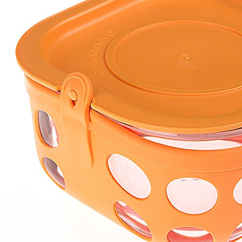 Lifefactory 4-Cup Glass Food Storage with Silicone Sleeve, Orange