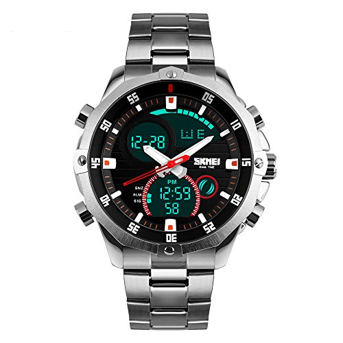 -. Title : Smalody Full Steel Military Watch Casual Waterproof Watches Dual Movement Digital LED Wristwatch