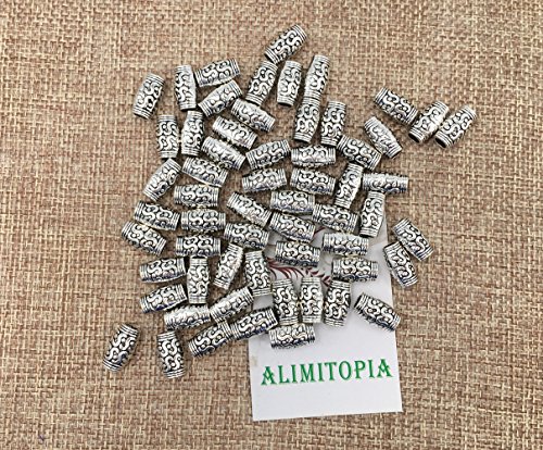 60pcs Buddhism Tube bead Spacer bead with decorative embossment pattern Lucky Charm Pendant Connector for DIY Crafting Bracelet Necklace Accessories By Alimitopia(Antique Silver)