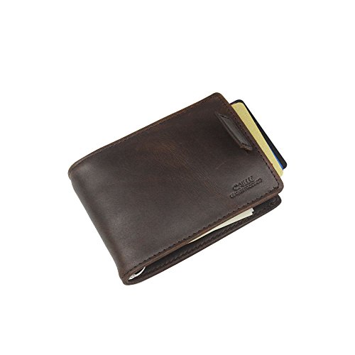 Caillu Genuine Leather Wallets. - CAILLU has been working in Leather craft for 20years, has many skillful artisans. TIP: - Due to the monitor and light difference, the color will be slightly different from the pictures. A minimalist wallet should never make you feel like you have to give up your essentials. We sweat the small stuff because that's what it takes to create a better experience. A wallet is something you use every day, and you deserve to be delighted. Our unique bi-fold card sleeve is made for modern, mobile everyday life. Born of luxury, and designed with exclusive Italian leather and classic Handmade craftsmanship, it lets you carry your cards and cash bulk-free. It's a "smarter" way to carry. Makes a perfect gift. Elegant design and ultra slim for comfort in your pocket this is the future of wallets. Keeping your life simple and your opportunities interesting. Caillu is a team of free thinkers with varied disciplines from design, engineering, marketing and finance. Together, they share their diverse strengths and united passion of creation to bring to you NEW life-easing everyday must haves. "We love all things beautiful, functional and well crafted. Today there's a growing community of people who appreciate and hunt for this union of solid functionality, minimalist style combined with great craftsmanship made from honest materials. We believe that these are the core value of our creations and customers.Buy It Once, Buy It Right. Every wallet is designed with exclusive Italian leather , skillfully crafted, and comes with a 3-year no hassle warranty, full refund or a free replacement, whichever you prefer. Beware of Amazon imitators! 0