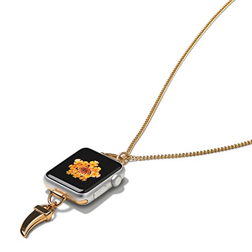 Bucardo Charm Necklace Accessory for Apple Watch SERIES 1 & SERIES 2 - Signature Charm & 38” Adjustable Chain Transform Apple Watch into Jewelry for Alternative Wearability. (Horn, Gold 42mm)