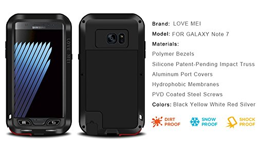 -. Binding : Wireless Phone Accessory -. Brand : Love Mei -. Feature : 100% Brand New &Perfectly fits for your Samsung Galaxy Note 7,case weight:223g Fashion design,looks very cool,the case for man,soldier,warrior,Outdoor / Keep your Samsung Galaxy Note 7 safe with the ultimate in aluminum protection. Products made through special craft processing, the visual and craft is perfectly combined after the installation / enthusiasts,Rider,Truck driver and every people want well protect the Samsung Galaxy Note 7 / Made of high-quality material ,Shockproof Aluminum Metal Protection Case Cover for Samsung Galaxy Note 7 / Unique design and easily access to all buttons, controls and ports without having to remove the skin,Shock absorbing design engineered to absorb, evenly distribute and circulate the impacts into the bump -. Label : bpowe -. Manufacturer : bpowe -. PackageQuantity : 1 -. ProductGroup : Wireless -. ProductTypeName : WIRELESS_ACCESSORY -. Publisher : bpowe -. Studio : bpowe -. Title : Galaxy Note 7 Metal Case, bpowe Anti fall Luxury Aluminum Alloy Protective Metal Dustproof Shockproof Protective Armor Heavy Duty Cover Shell Case for Samsung Galaxy Note 7