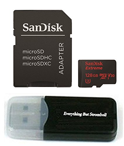 128GB Memory Card for Gopro Hero 5, Karma Drone, Hero 4, Session, Black Silver White - Sandisk Extreme UHS-1 128G micro SDXC Micro SD with Everything But Stromboli Card Reader