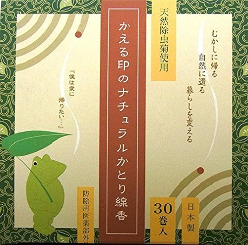 The frog stamped natural pickled incense stick is a sticky incense stick incense with 100% natural material made from a natural pyrethrum which was used as a main ingredient of a katori incense stick from the Meiji era until the Showa 30 's.