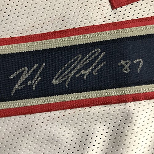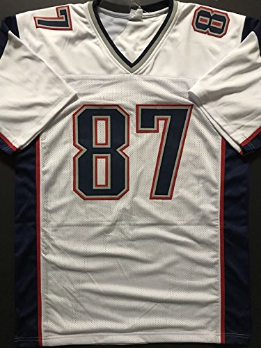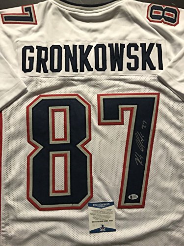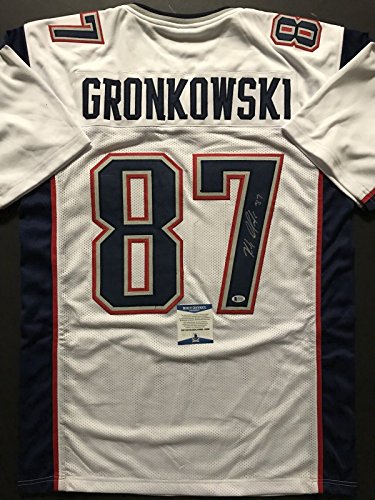 Autographed/Signed Rob Gronkowski New England Patriots White Football Jersey Beckett BAS COA