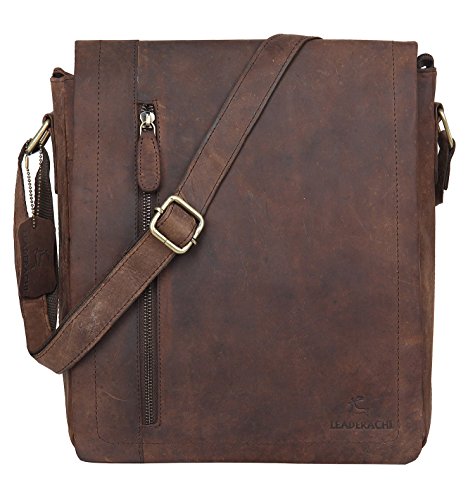 -. Brand : LEADERACHI -. Department : unisex-adult -. Feature : 100% GENUINE HUNTER VINTAGE LEATHER: Crafted from tough, 100% Semi Full-Grain Boot Leather, which takes hits well and looks even better with age. Full-Grain Leather is the top layer of the cow skin which is the most expensive and toughest part. The distinguishing feature of this leather is that the leather may have wrinkles, scratches that are inherent characteristics. / CRAFTMANSHIP, STICHES AND PARTS: Our Products are handmade by Professionally Skilled Craftsmen, because of which the bags have best finishing in its class. Brass/ Metal Fitting Buckles and Holders are Internally Lined with Strong Green Canvas make it Durable and Long Lasting. Every stress point on this bag is double-stitched and riveted or reinforced with hidden nylon strapping. / PERFECT FOR ANY SITUATION: Looks great in the courtroom, boardroom, on worldwide travel. We have received countless positive testimonials from company executives, lawyers, military personnel and college students who love their classic messenger sling bag. / FEATURES AND COMPARTMENTS: 12" Tall x 11" Wide x 4" 1 large main compartment sealed by a leather cover with magnet closure, 1 zip pocket on the front, 1 small compartment in front of the spacious main compartment, sealed by the leather cover with magnet closure, 1 zip pocket behind the leather cover, 1 smaller zip pocket on the inside, 1 zip pocket on the back, 2 slip compartments within the main compartment, perfect for cell phone and wallet/purse -. Model : HALEATHERS207201-$P -. ProductGroup : Apparel -. ProductTypeName : LAGE -. Title : Leaderachi - 100% Pure Genuine Real Vintage Hunter Buffalo Leather Handmade Men Crossover Shoulder Messenger Sling Bag ["MODENA"]