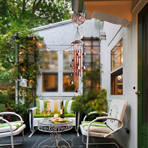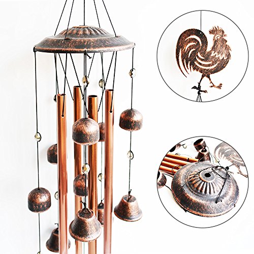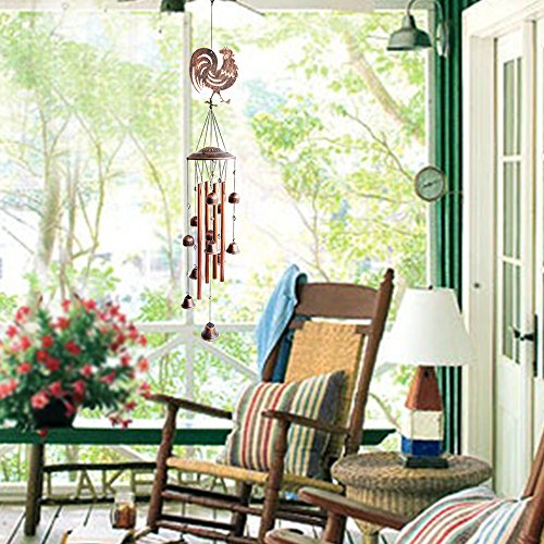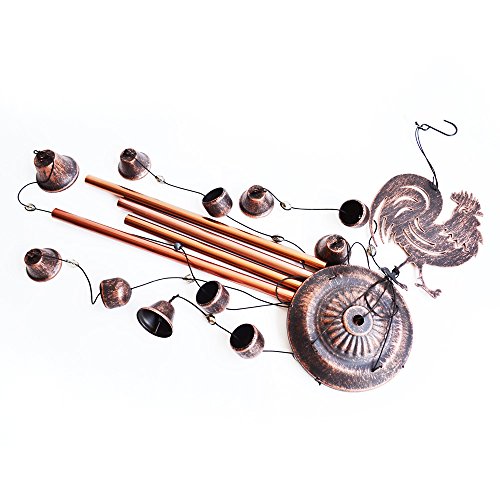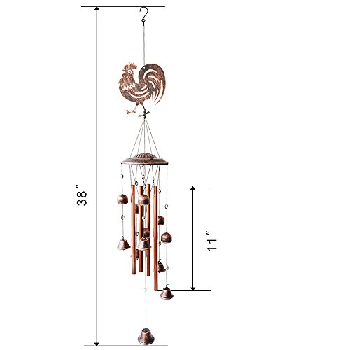 NOVEL DESIGN- This rooster wind chime bell consists of a metal top and 12 black-gold colored metal bells, lifelike metal rooster and 2 wind bells as wind catcher,the longest tube is 11 inches.