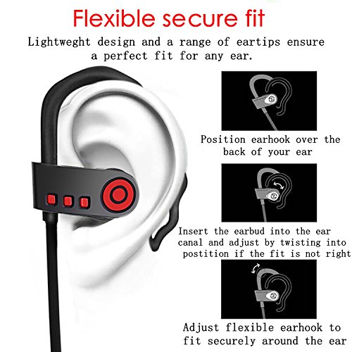 -. Feature : ★Designed For All Users :Ultra light design-18g ,ideal for wireless earplugs, gyms, hiking, cycling, jogging, simple casual listening, soft smooth silicone gel surface have comfortable wearing without falling out . / ★Noise Isloaiting And Top Quality Audio: CVC 6.0 noise Isolation technology reduces outside noises, So you can enjoy your favorite music,no matter where you are. And the integrated microphone lets you chat without noise or other interference. / ★Bluetooth 4.1 And Support 2 Devices Connection: With bluetooth 4.1 and apt-X tech, easy and fast pairing with smartphones, the headphones ensure high-fidelity stereo music and clear speech within 10 meters.Supports connect two bluetooth devices at same time. / ★IPX5 Water Resistant: Bluetooth headphones chip with internal nano-coating treatment and water resistant shell offer a double layer of water resistant protection. Can run in the rain or sweatproof in the gym to enjoy the music or phone communication / ★Long-Lasting Usage: Up to 8 hours talk time / music time (Playtime varies according to volume level and audio content). It also has up to 240 hours of standby time and charges in 1-2 hours