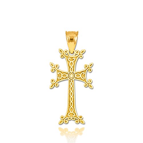 -. Binding : Jewelry -. Brand : Religious Jewelry by FDJ -. Department : womens -. Feature : Armenian Apostolic Church cross pendant for chain necklaces or charm for bracelets with infinity knot and trefoil motif / masterfully handcrafted with solid 14 karat yellow gold in polished finish / comes with free special gift packaging / made in the USA yet offered at factory direct jewelry P.R.Ice / ships from the manufacturer directly to the customers -. Label : Claddagh Gold -. Manufacturer : Claddagh Gold -. Model : CM906 -. MPN : CM906 -. PartNumber : CM906 -. ProductGroup : Jewelry -. ProductTypeName : FASHIONNECKLACEBRACELETANKLET -. Publisher : Claddagh Gold -. Studio : Claddagh Gold -. Title : Solid 14k Yellow Gold Armenian Cross Necklace Pendant