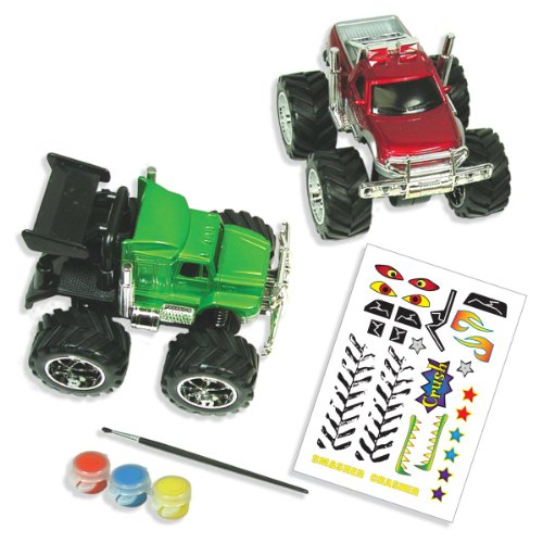 Studio : Faber Castell Publisher : Faber Castell Binding : Toy Product Description Rev them up and watch them race, roll and flip! Customize these two high-quality monster trucks with cool stickers and painted accents. Monster trucks measure 4 1/2"w X 3 7/8" h. 0