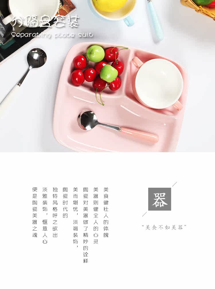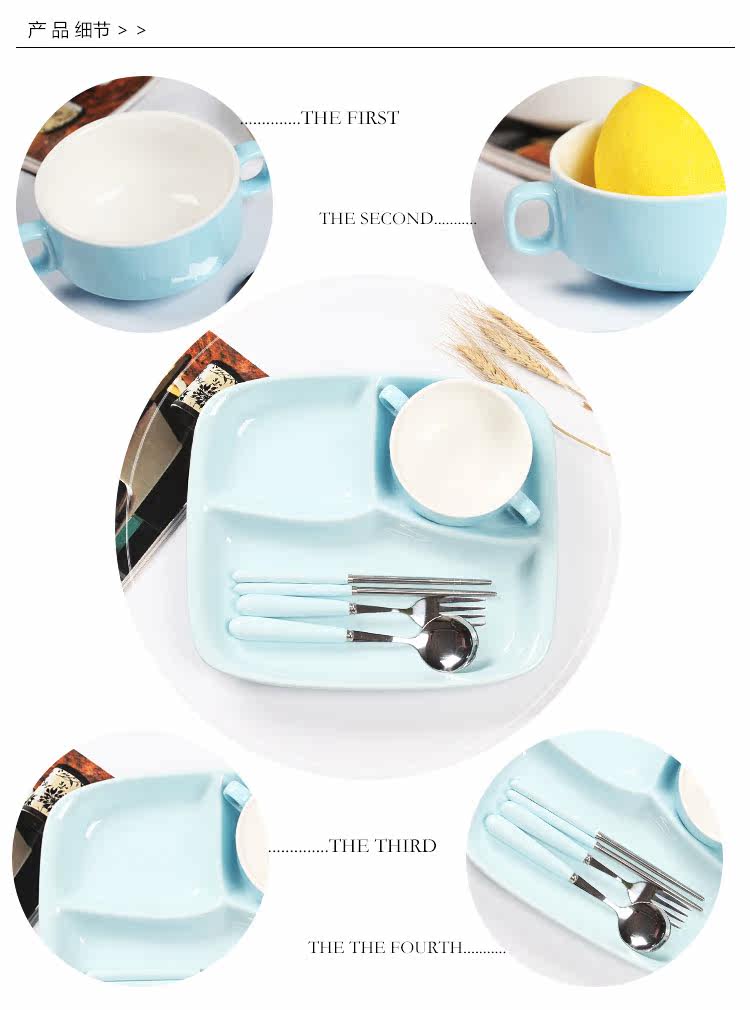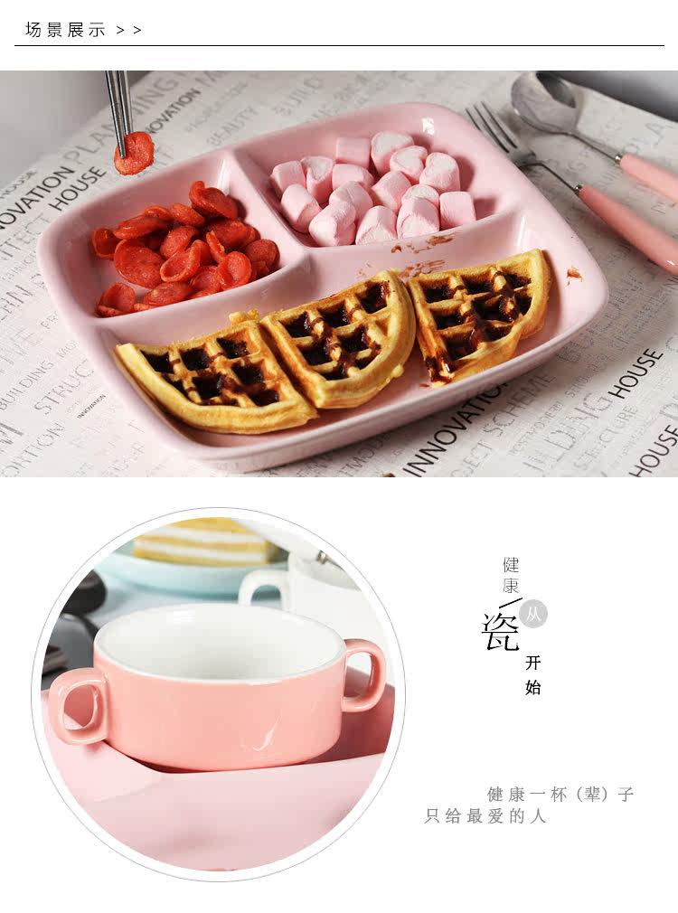 日式创意陶瓷分隔盘儿童可爱早餐盘套装餐具家用长方形西餐盘子